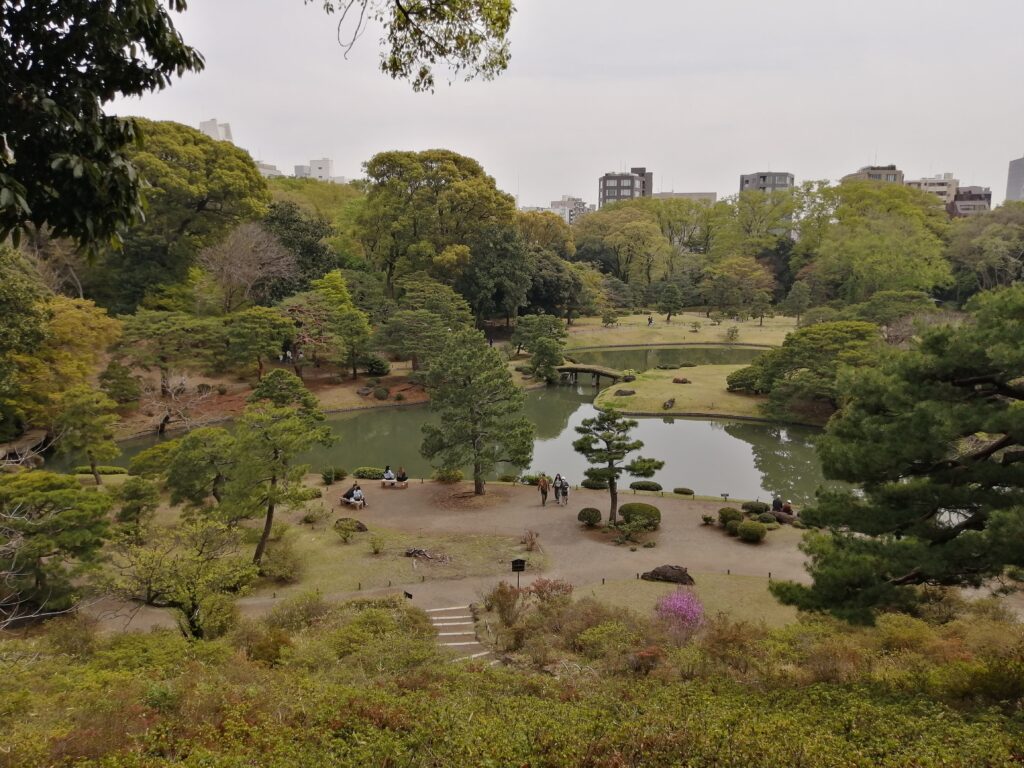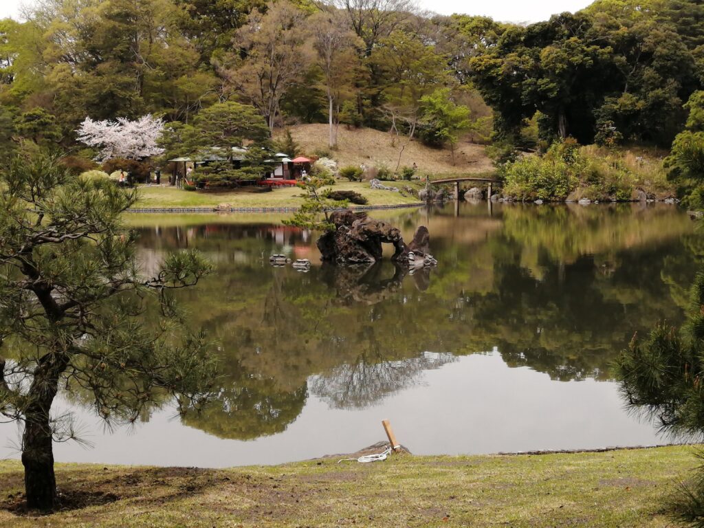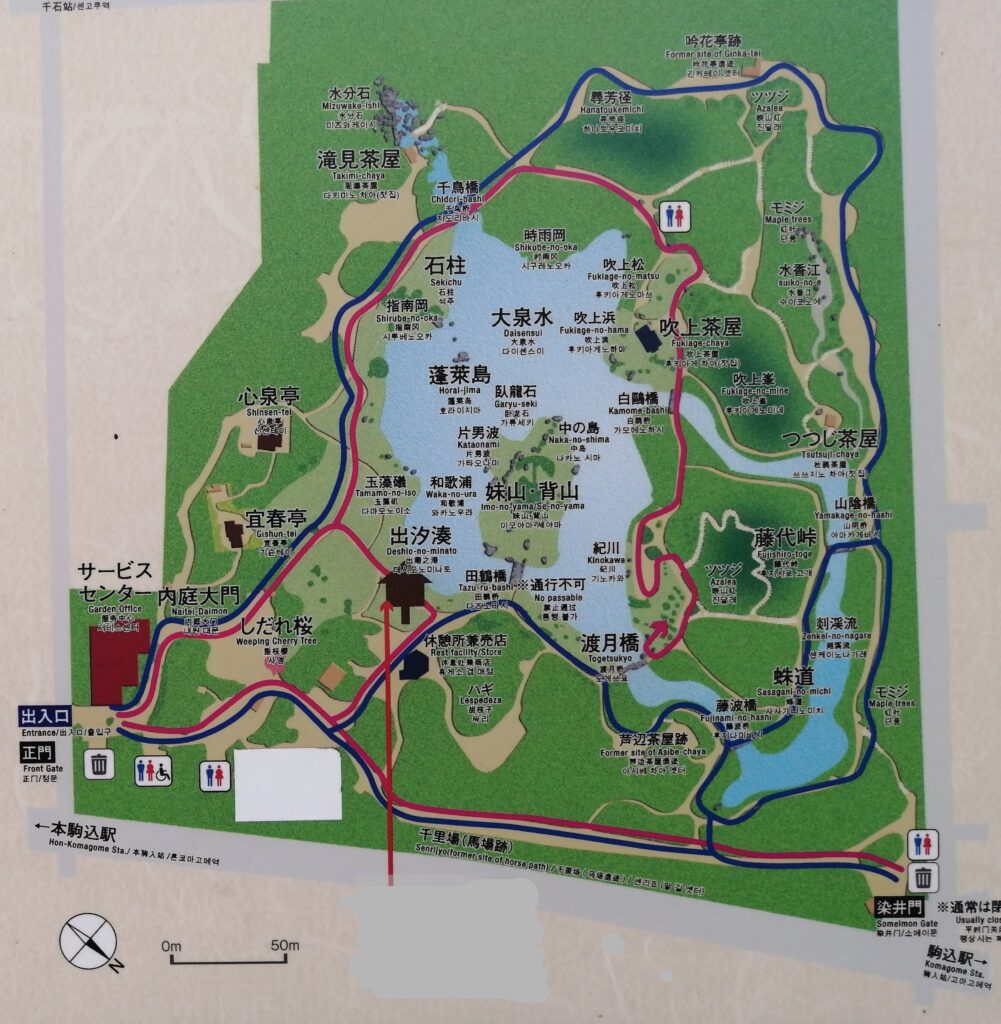 今回は、右下の染井門から千里場を通って左側の内庭大門に向かい、そこから時計回りで池の周りを散策してきます。